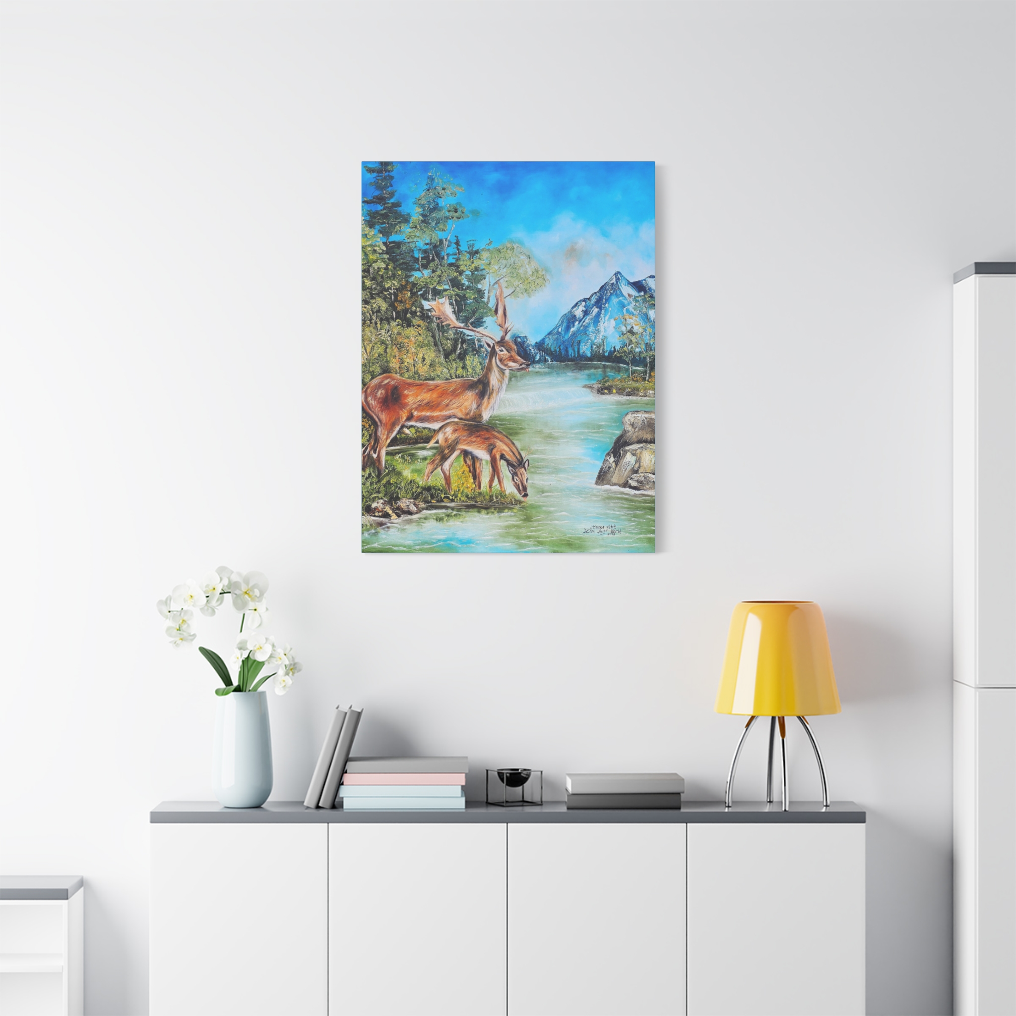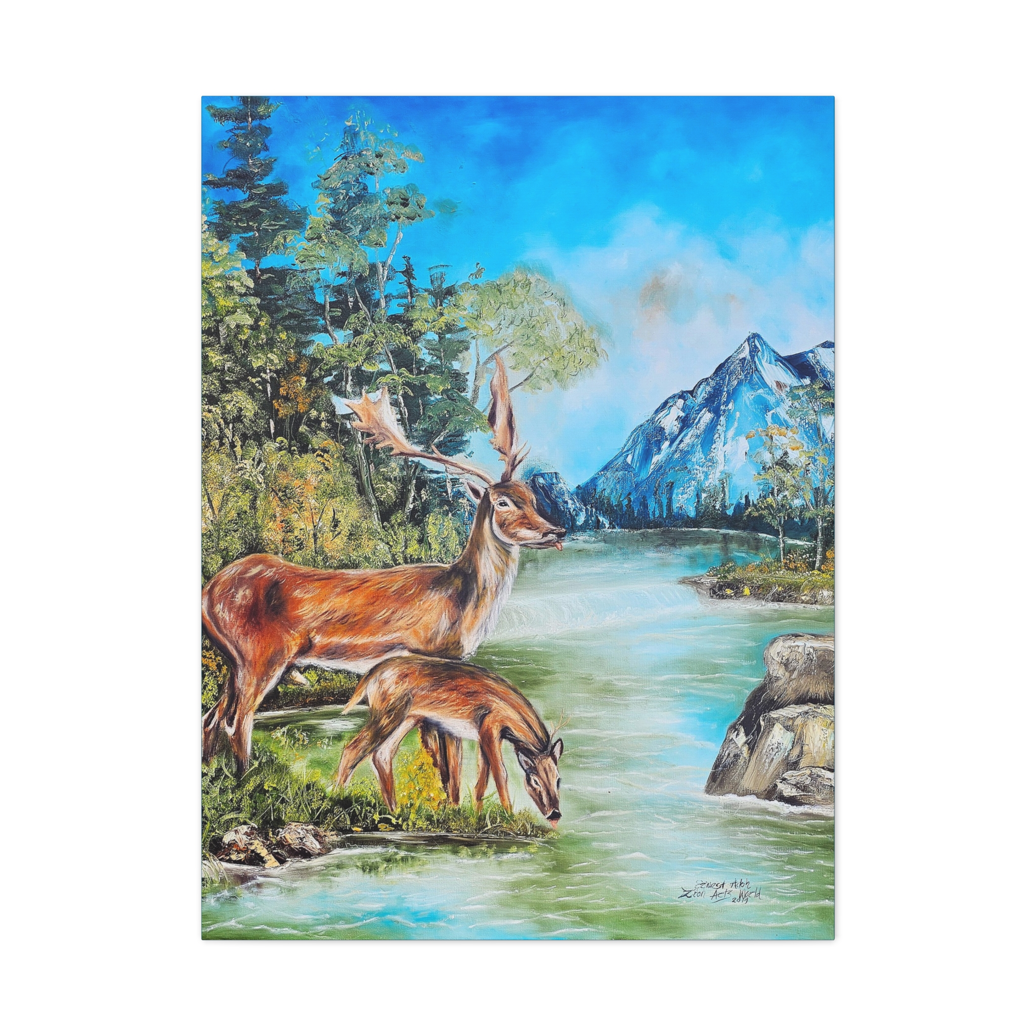 This painting reflects the truth that God is the ultimate source of life and fulfillment. Just as water sustains the deer, God sustains the soul with peace, strength, direction, and renewal. Yet fulfillment is found in nearness. The painting invites the viewer to consider the posture of pursuit—to respond to spiritual thirst by drawing closer to God rather than remaining distant.
